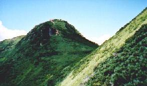 ![]() 俎グラ下山中に右手を振り仰ぐと柴安グラがまだ青空の中に屹立していた。岩場の急な下降路は徐々に緩やかとなり、背丈もある草や低木の中を行くようになると、尾瀬沼4.2Kmと書かれた道標を見る。ハイマツの道を行くとすぐにミノブチ岳に着く。ケルンのある裸地からは後方の燧ケ岳、前方の尾瀬沼と眺めが良い。登路とした場合は、絶対に休憩地だ。 (00/08/19) |